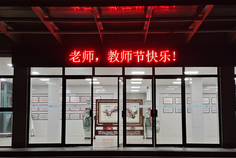 校园里,各办公楼、教学楼、学生公寓、餐厅、室外广场等所有场所的LED屏、电视等媒介,以字幕滚动或电子海报方式为教师亮灯。