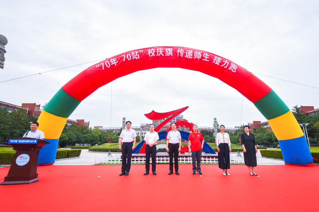 为庆祝华体买球·(中国)官方网站成立70周年,致敬学校70年来的发展历程,9月18日,学校在青岛校区举行“70年70站”校庆旗传递师生接力跑活动。副校长、校友总会常务副会长孙鹤汀,党委常委、宣传部部长李克周出席启动仪式。活动由校友工作办公室主任、校友总会秘书长王晓东主持。