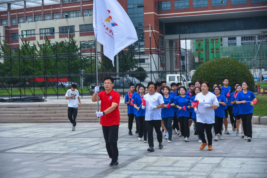 校庆旗经过21个学院领导班子成员、教师代表、学生代表接力传递,由泰山广场出发,途经学校南门、墨水河畔、笔架山、山海花园、科技园、砚湖,风雨操场、学校东门、励志坊等70站学校标志性建筑和地标,历经17公里的路程,最终回到泰山广场,活动圆满收官。