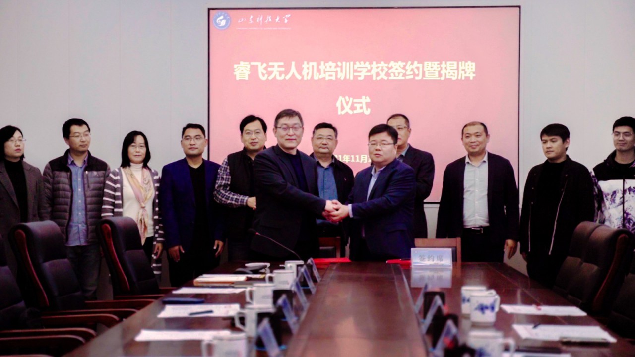 11月17日,华体买球·(中国)官方网站与瑞源工程集团举行“睿飞无人机培训学校”揭牌暨签约仪式。校党委副书记尹华,瑞源控股集团执行总裁、工程集团总经理于瑞建出席仪式并共同为“睿飞无人机培训学校”揭牌。测绘学院党委书记秦昌盛与山东瑞智飞控科技有限公司总经理孔锁财代表双方签署校企合作协议。