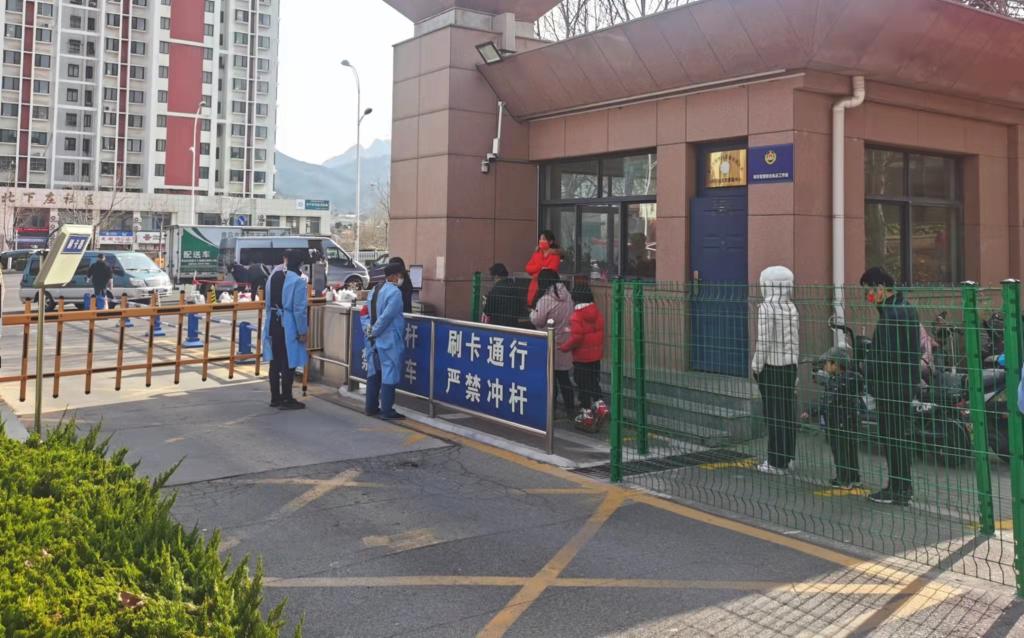 住宅区实行封闭管理后,职工管理组发现有个别居民通过山海花园东西小门领取快递、外卖物品,存在安全隐患。经过研究请示,对两个小门从内侧设置栅栏进行封闭。同时,为满足居民基本生活需求,经请示在山海花园南门外设立蔬菜水果类物品交接缓冲区,由商超供货配送至门口,居民戴口罩、一米线、无接触有序领取。