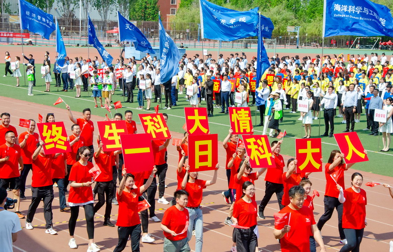 校党委常委、宣传部部长李克周宣布体育道德风尚奖、母校情深奖获奖名单。土建学院、能源学院、艺术学院、海洋学院、数学学院、安全学院、文法学院、经管学院获体育道德风尚奖;校友代表队获母校情深奖。总裁判长杨彤彤宣布比赛成绩。化工学院获学生甲组、乙组团体总分第一名,机电学院获学生甲组、乙组团体总分第二名。在本次运动会上,学生组男子甲组4×100米比赛、男子组跳高比赛两项赛事打破学校记录。与会领导为获奖代表进行颁奖。颁奖现场,热烈的掌声和欢呼声经久不息。