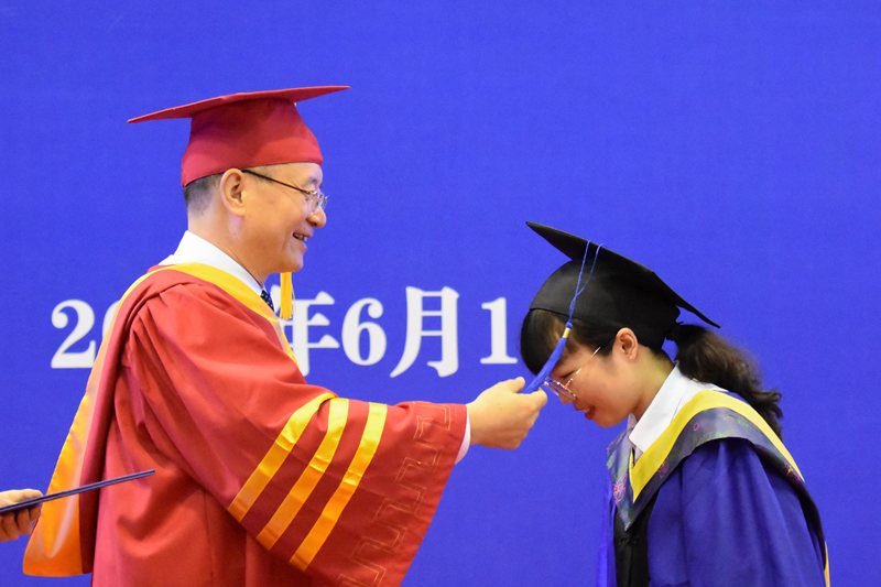 “高山下,泉水旁,海滨好风光……”在共同唱响那首耳熟能详的校歌声中,全体毕业生表达了对母校深深感恩之心与祝福之情,将典礼气氛推向高潮。