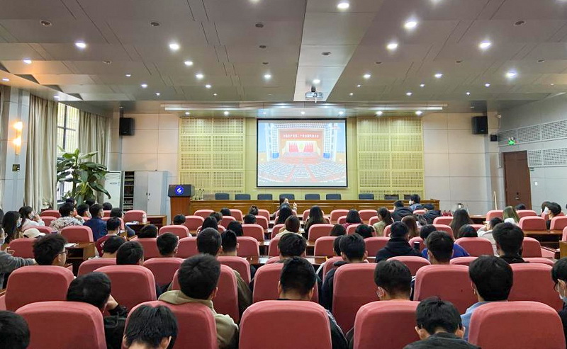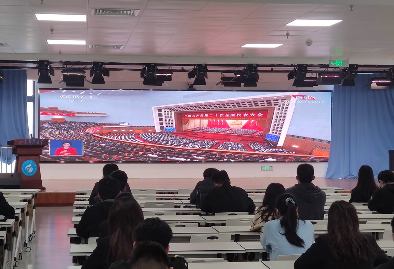 10月16日上午,广大青年学生在报告厅、党团活动室、实验室、教室、宿舍等地,通过网络、电视、广播等多种渠道收听收看党的二十大开幕会盛况,引发热烈反响。