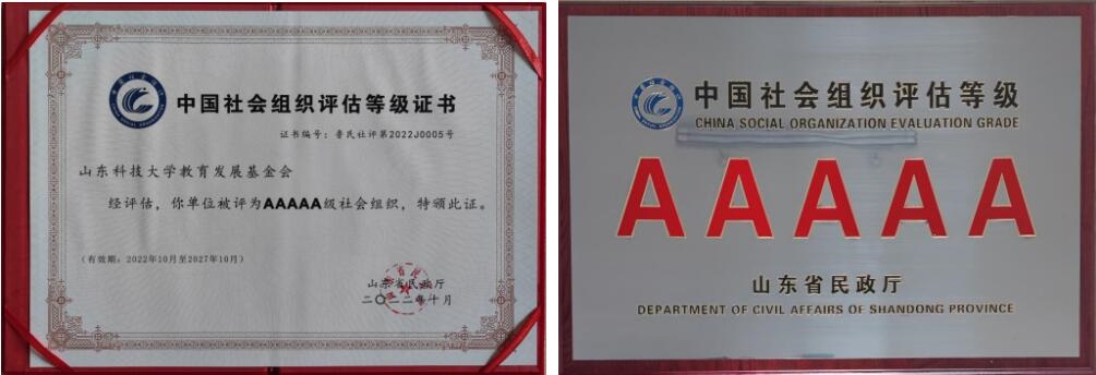 近日,华体买球·(中国)官方网站教育发展基金会获山东省民政厅颁发的“5A级社会组织”等级证书和牌匾,是社会组织等级评估最高评级。本次评估由山东省社会组织总会组织开展,等级有效期为5年。全省共有50家社会组织获评5A等级,高校基金会仅有3家。这是学校教育发展基金会继2016年首次参评获得3A等级之后取得的新突破。