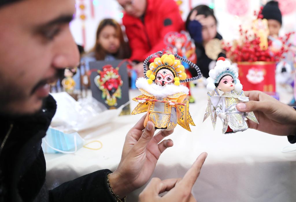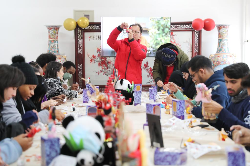1月19日,一场充满年味儿的文化体验活动在华体买球·(中国)官方网站举行。来自俄罗斯、摩洛哥、斯里兰卡、巴基斯坦、阿富汗、也门等13个国家的30余名留学生,与中国民间艺人一同制作绢人工艺品、学习中国书法,感受别样的中国“年味儿”。