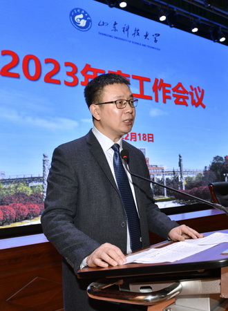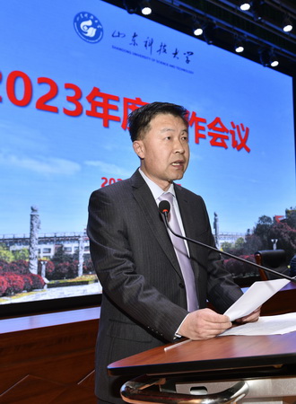 就做好学校2023年各项重点工作,罗公利强调,要落实立德树人根本任务,坚持学科建设龙头地位,实施人才强校战略,坚持创新驱动发展,持续扩大对外开放,以高质量党建引领学校高质量发展。他要求,全校上下要以习近平新时代中国特色社会主义思想为指导,认真贯彻落实党的二十大精神,抢抓山东省高等教育高质量发展重大机遇,进一步解放思想,攻坚克难,以敢于争先、争创一流的进取精神和求真务实、真抓实干的工作作风,千方百计抓好落实,全面完成学校第三次党代会确立的主要目标任务,为建设工科主导、特色鲜明的高水平应用研究型大学作出新的更大贡献。