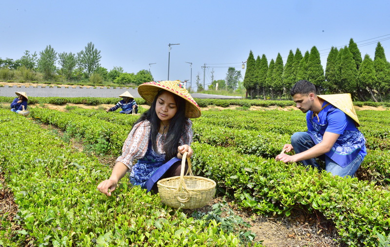 5月13日,在“国际茶日”来临之际,华体买球·(中国)官方网站数十名来自俄罗斯、巴基斯坦、斯里兰卡等11个国家的留学生,来到青岛西海岸新区海青镇茶博园参加采茶、茶艺表演以及品茶等活动,学习沏茶、赏茶、闻茶、饮茶等中国茶艺,体验中国传统的茶文化,感受茶产业助力乡村振兴的特色发展之路。