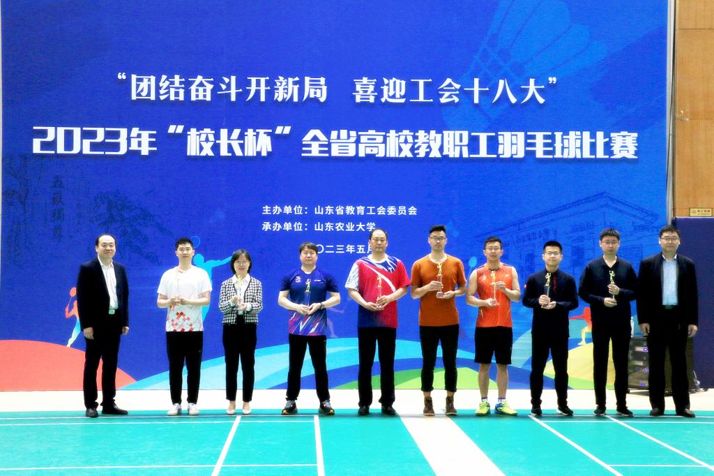 5月9至12日,由山东省教育工会委员会主办的2023年“校长杯”全省高校教职工羽毛球比赛在山东农业大学体育馆举行。李克周、韩庆防、宋燕、陈冰、郝得华、吴昊、王家坤、庞晖组队代表学校参加比赛。
