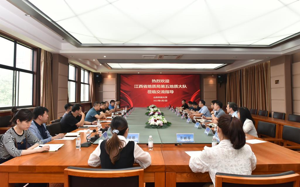 6月2日,江西省地质局第五地质大队大队长万义有一行6人来校就科技创新、人才培养、创新平台建设等进行交流调研,副校长张建会见了客人并座谈。