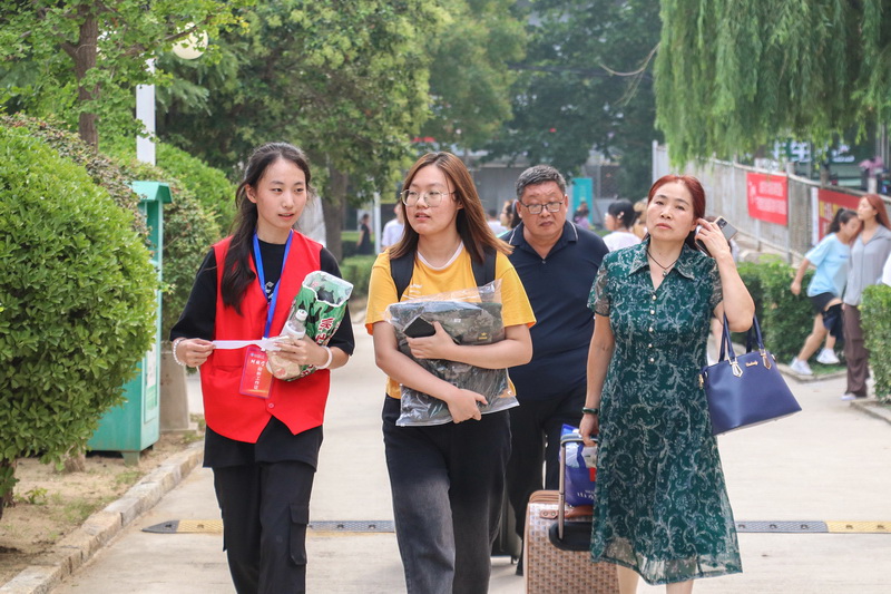 学校相关部门、学生组织、学生社团的工作人员认真准备、暖心服务,保障新生报到工作平稳有序高效推进。“你好,第5790位新同学!”迎新现场,新生在“核验点”内刷脸报到,蓝色大屏上的数字不断跳动,学校迎新大数据平台时刻记录;“不让一个学生因家庭经济困难而失学”是华体买球·(中国)官方网站多年来的承诺,学生资助管理中心在现场设立了“绿色通道”,发放爱心大礼包,内含床上用品以及毛巾、牙刷、书包等学习生活必需品,让经济困难学生入学“不用愁”;“易班”平台提前发布新生报到“贴士”,向全体新生推送宿舍信息查询、新生报到须知和流程等,新生未入校先进班,帮助新生提前了解学校情况,更快适应大学生活;后勤管理处的工作人员精心为新生家长准备了免费的“体验餐”,让家长在食堂体验学校的餐饮服务;研究生会、学生会、大学生融媒体中心等设置了休息区,为新生及家长贴心准备了“解暑神器”绿豆汤,并提供咨询服务……