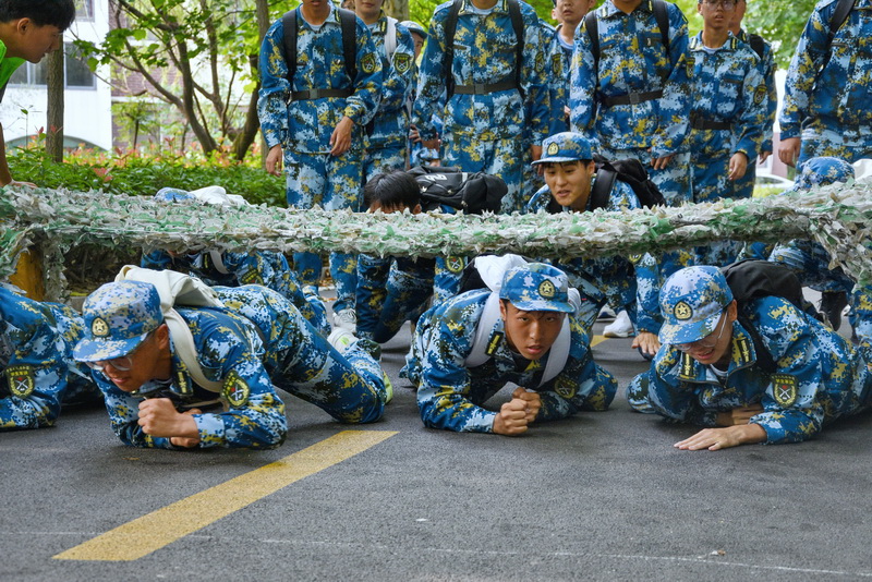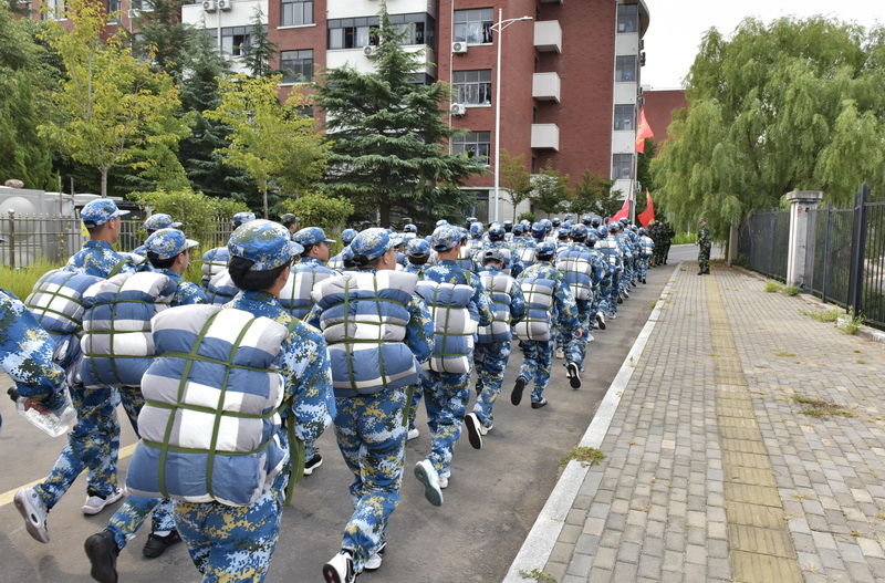 此次拉练全程约7公里,行军1个多小时,模拟真实战场,19个军训营共同“作战”,途中设置穿越染毒地带、穿越障碍地带、躲避无人机侦查、快速通过空袭地带等关卡。行军拉练过程中,新生们相互帮扶、鼓励,大家虽然疲惫,脸上也流下了滴滴汗珠,但在校长的带领、教官的鼓励、同学的帮助,还有相互之间一声声热情的“加油”中,参训新生自觉接受磨炼和检验,以顽强的意志和团结协作的精神,出色地完成了全部拉练项目。