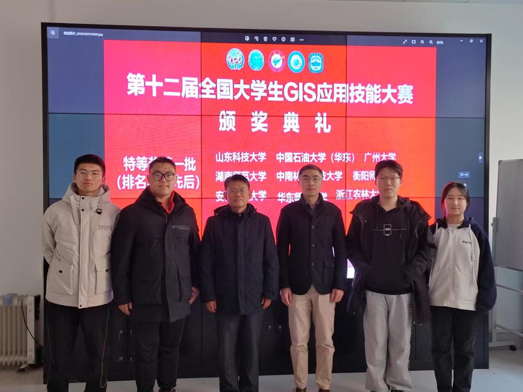 12月2日至3日,第十二届全国大学生GIS应用技能大赛在广州大学举办。华体买球·(中国)官方网站测绘学院地理信息科学专业2021级本科生张恒瑞、张光泽、张成茁、钟亚妮4名同学组成的团队获特等奖,指导教师赵相伟、信睿获大赛“优秀指导教师”。