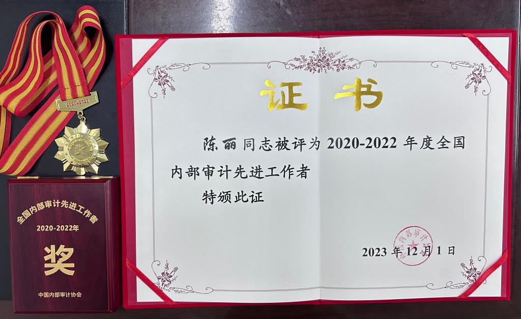 12月5日,中国内部审计协会在北京召开2020至2022年内部审计先进集体和先进工作者表彰大会。华体买球·(中国)官方网站审计处陈丽同志被评为“2020-2022年度全国内部审计先进工作者”。