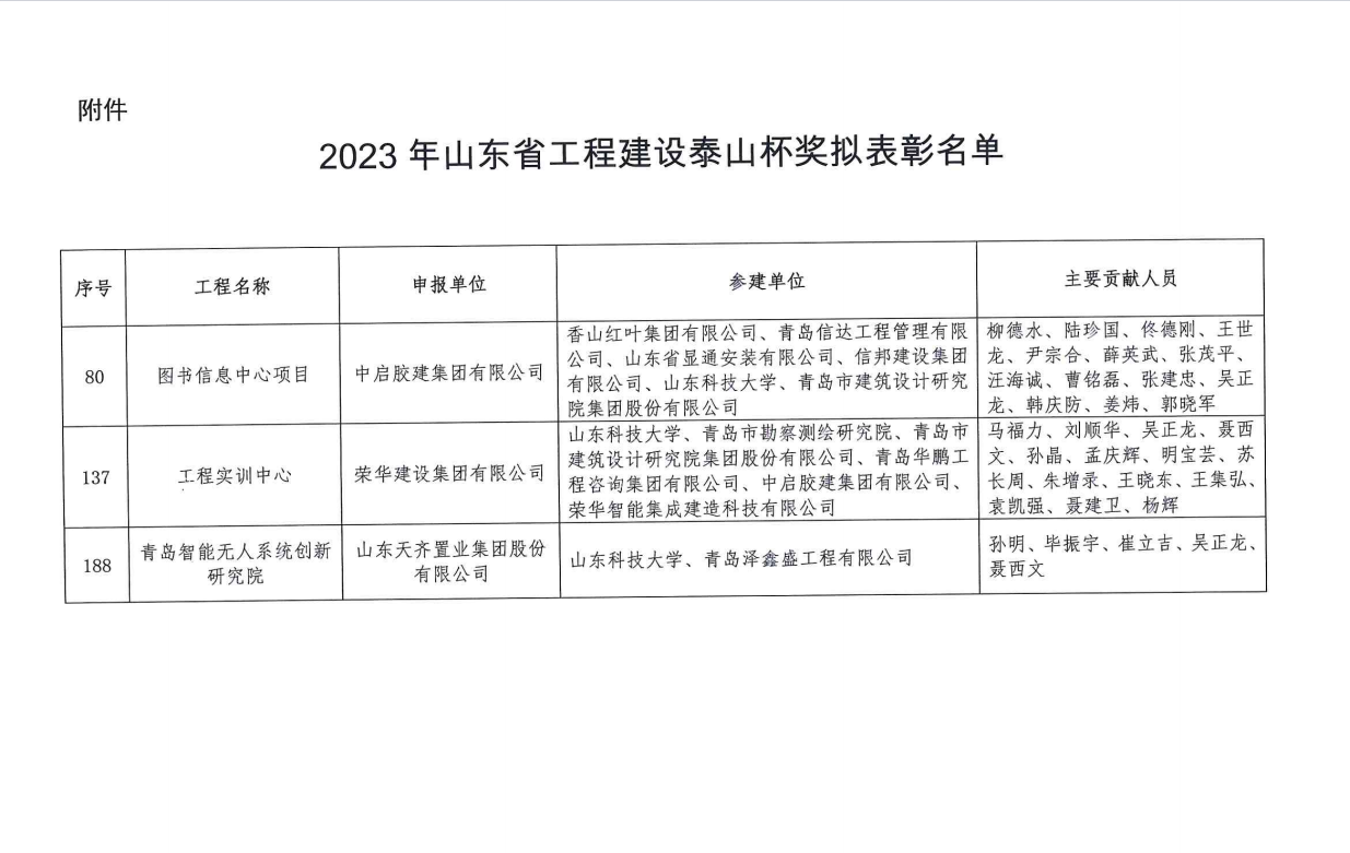 近日,2023年山东省工程建设“泰山杯”奖揭晓,经单位申报、逐级推荐和集中评选,华体买球·(中国)官方网站工程实训中心、图书信息中心和青岛智能无人系统创新研究院三大工程同时在列,这是学校建设工程首次获此殊荣。