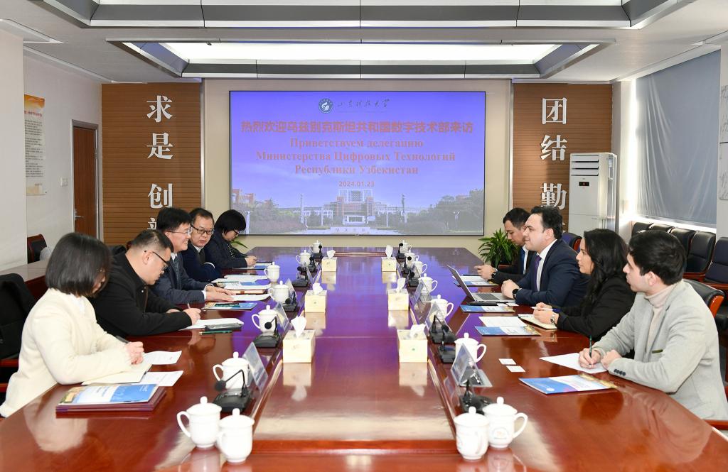 自1月23日起,乌兹别克斯坦总统米尔济约耶夫率团访华,乌中两国举行了地方合作论坛、百校合作论坛等丰富活动。此次乌兹别克斯坦共和国数字技术部随总统访问团访问中国期间来校考察交流,为今后双方在IT领域开启合作,拓展与上合组织国家教育、科技、人文交流奠定了坚实基础。(国际交流处供稿 摄影/责编:许浩)