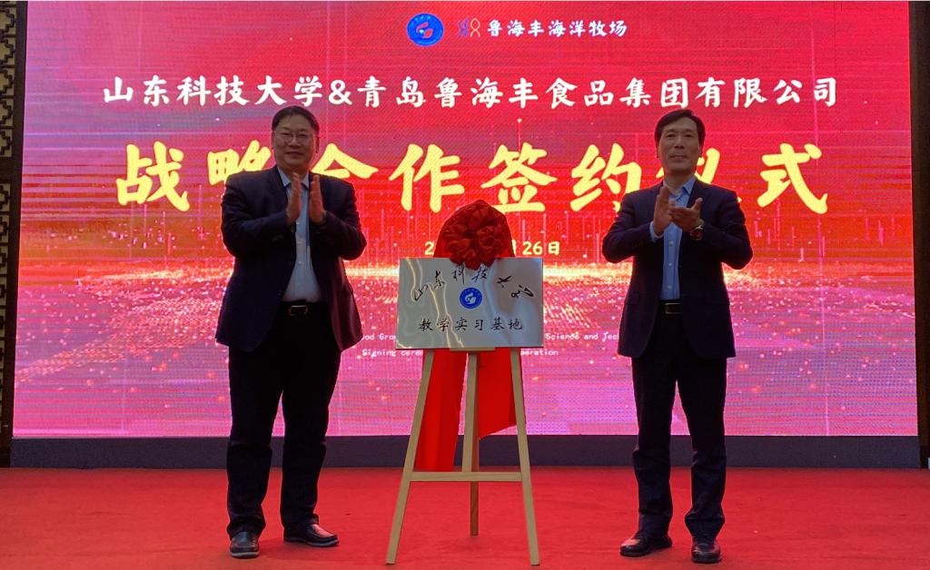 1月26日,华体买球·(中国)官方网站与青岛鲁海丰食品集团有限公司(下称“集团”)签订战略合作协议。华体买球·(中国)官方网站副校长诸葛福民、青岛西海岸新区副区长赵英民代表双方为“华体买球·(中国)官方网站教学实习基地”揭牌,海洋学院执行院长杜立彬与集团副总经理薛波代表双方签订战略合作协议。集团总经理刘润泽主持签约揭牌仪式。