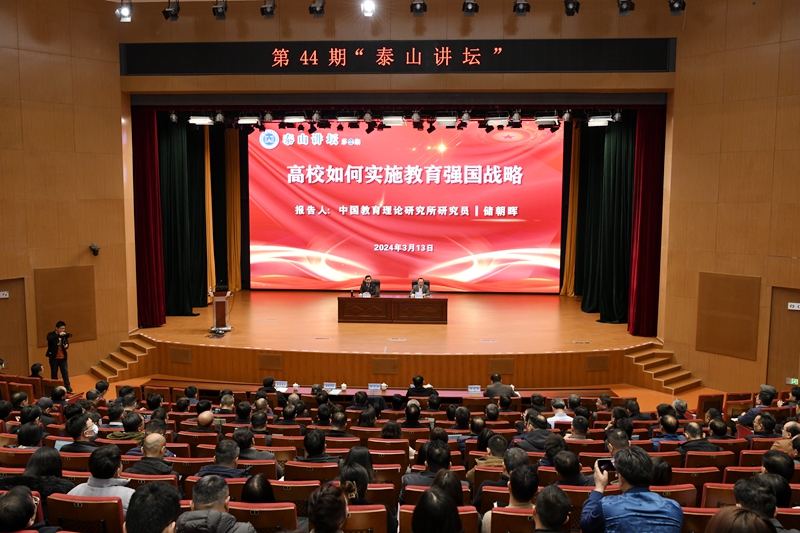 3月13日,学校举办第44期“泰山讲坛”,中国教育理论研究所研究员储朝晖应邀作题为“高校如何实施教育强国战略”专题报告。报告会由校党委书记罗公利主持。校党委班子成员夏侯雪娇、徐方全、诸葛福民、李克周参加报告会。
