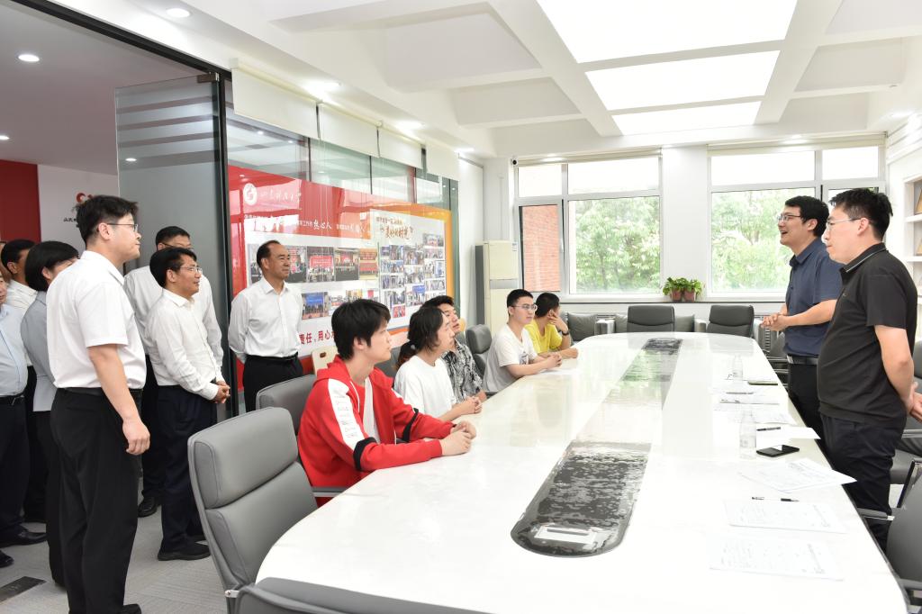 邓云锋一行先后考察了大学生活动中心“一站式”学生社区、生涯驿站、国防驿站、就业洽谈室,观摩学校体育教学和思政课教学情况,听取了相关情况汇报,并就学校强化就业指导服务、进一步做好思政课建设、加快优势学科发展,推动学校各项事业高质量发展提出要求。