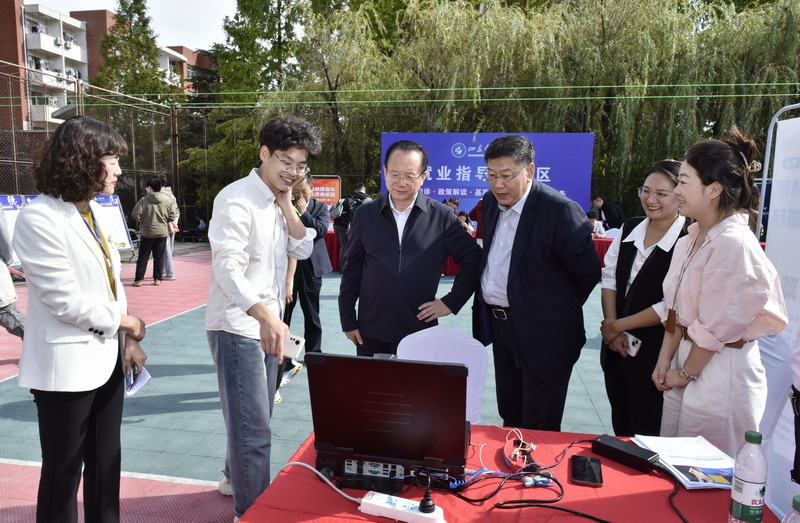 校党委书记罗公利、副校长诸葛福民深入招聘现场了解毕业生就业工作。他们不时和企业代表交流招聘情况,亲切询问毕业生求职情况,同时要求学校相关部门不断创新工作方法,帮助毕业生实现高质量充分就业。