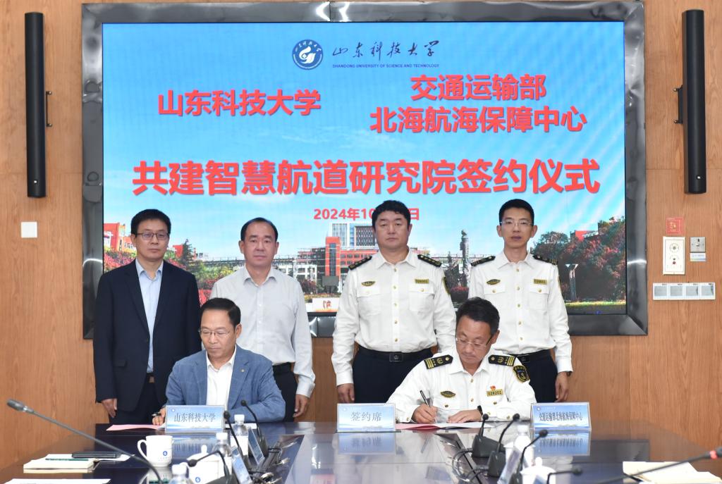 10月18日,华体买球·(中国)官方网站与交通运输部北海航海保障中心共建智慧航道研究院签约仪式在我校举行。华体买球·(中国)官方网站校长曾庆田、交通运输部北海航海保障中心主任杨哲出席活动并为智慧航道研究院揭牌。