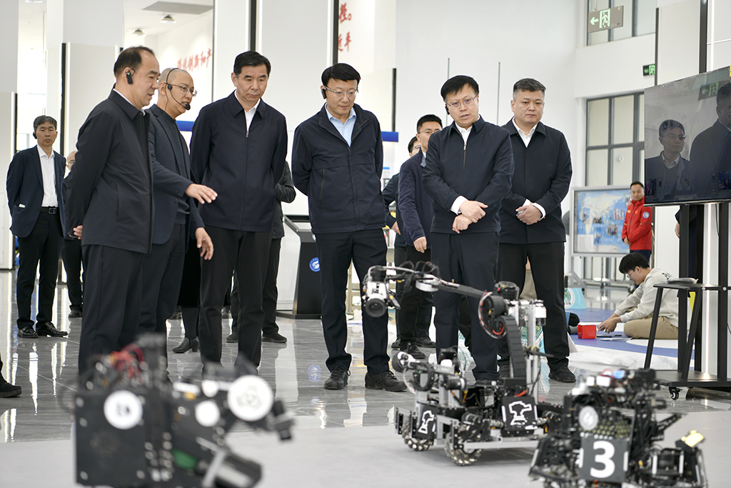 在青岛智能无人系统创新研究院,刘斯杰与工作人员亲切交流,详细了解学校在控制科学与工程、电气工程、智能机器人、海洋智能移动平台、海洋探测、极地科考等方面关键技术攻关和成果转化情况。刘斯杰肯定了学校在相关产学研方面的战略布局,期望学校继续在有关领域开展前瞻性研究,积极培育经济发展新动能。