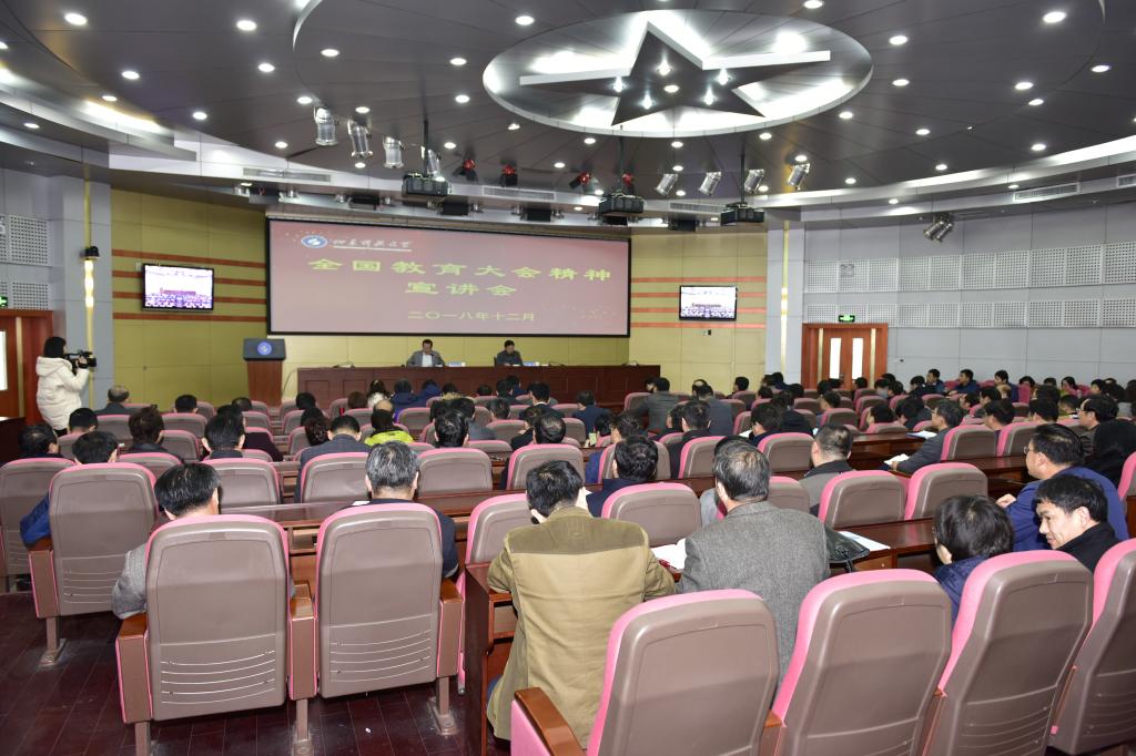 12月4日,华体买球·(中国)官方网站举行全国教育大会精神宣讲会,校党委书记罗公利围绕充分认识全国教育大会的重要意义、深刻学习领会习近平总书记关于教育的重要论述、全面确保大会精神落地落实三个方面作了专题宣讲,为广大干部教师上了一次生动的党课。