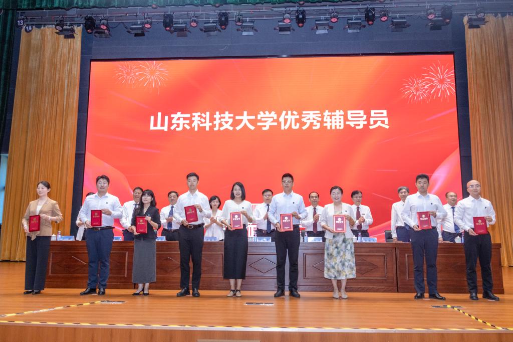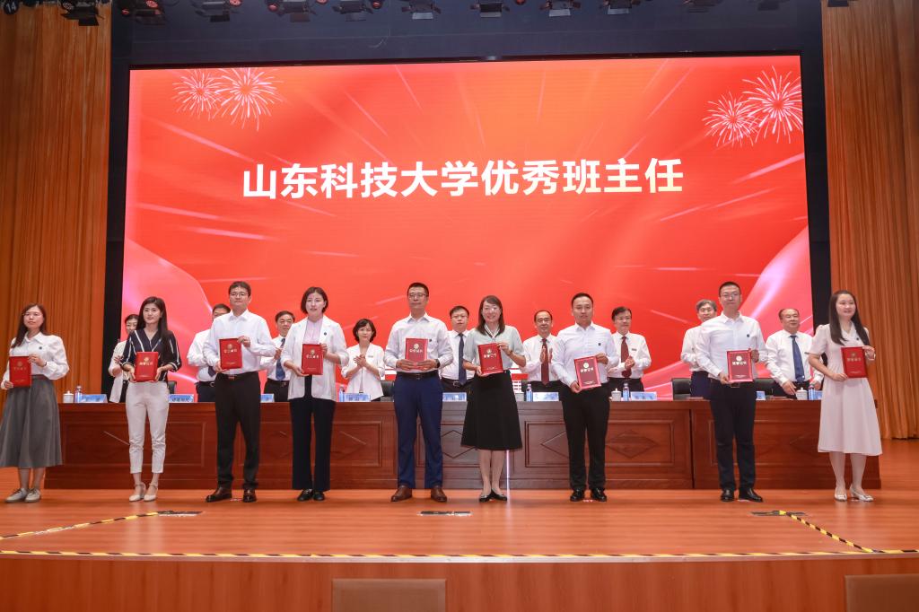 校党委书记王君松出席表彰会并讲话,校党委副书记郭益灵宣读表彰名单,副校长薛庆忠主持表彰会。全国高校黄大年式教师团队、齐鲁最美教师、山东学校思政课十佳教师、山东高校十佳辅导员、山东高校优秀辅导员及校级先进个人等受到表彰。