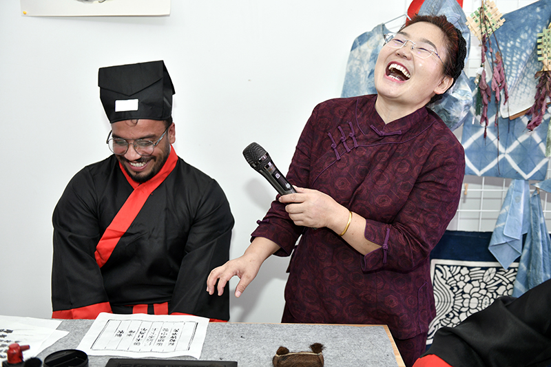 巴基斯坦留学生亚历克斯朗读古诗的口音逗得馆长雒建华忍俊不禁
