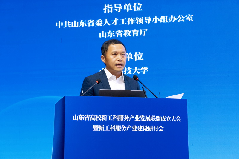 王君松在致辞中表示,在山东省委人才工作领导小组办公室和省教育厅等部门的指导与支持下,省内高校、科研院所和行业企业共同成立山东省高校新工科服务产业发展联盟。作为联盟牵头成立单位,华体买球·(中国)官方网站将以“扎根地方、服务产业”为己任,举全校之力,协同各方力量,加快推进产业学院共建、创新人才共育、实验平台共享、关键技术共研,努力成为服务产业发展的“人才摇篮”和“创新引擎”。希望汇聚联盟各单位的智慧与力量,将联盟建设成为新工科服务产业发展的“齐鲁样板”,为打造北方地区经济重要增长极贡献更多智慧、更大力量。