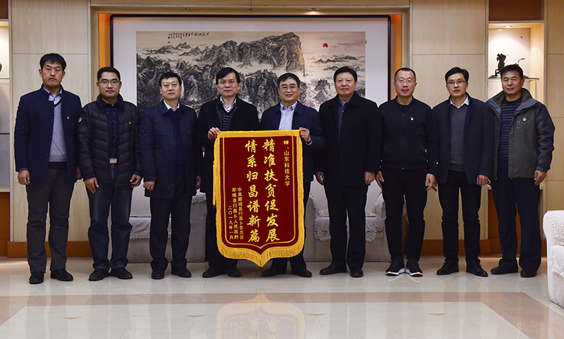 1月16日,山东郯城县委副书记韩浩一行专程来校交流“第一书记”帮扶工作,并向学校赠送锦旗,对华体买球·(中国)官方网站帮扶工作表示感谢。副校长高建广会见来访客人并座谈交流。校党委组织部部长陈涛,党委学校办公室有关负责人、郯城县归昌乡党组织负责人及我校选派的四位“第一书记”参加座谈会。