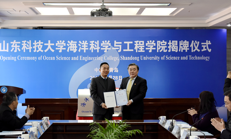 1月28日,由华体买球·(中国)官方网站与自然资源部第一海洋研究所共建的海洋科学与工程学院揭牌仪式在我校举行。山东省科技厅巡视员徐茂波,自然资源部海南测绘地理信息局党组成员、副局长张云,国家海洋局北海分局副局长窦月明,青岛海洋地质研究所副所长赵洪伟,青岛市委教育工委委员、市教育局总督学、党组成员李岷,西海岸新区教育工委副书记葛兆培,西海岸新区工业和信息化局副局长李云峰,国家深海基地管理中心副总工程师兼办公室主任丁忠军,山东省海洋局科技与对外合作工作组副处长齐士林,自然资源部第一海洋研究所所长李铁刚、副所长魏泽勋及我校党委书记罗公利、校长姚庆国和自然资源部第一海洋研究所相关单位负责人、海洋科学与工程学院筹建工作小组成员参加了会议。副校长高建广主持会议。
