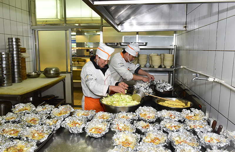餐厅工作人员为同学们精心准备午餐