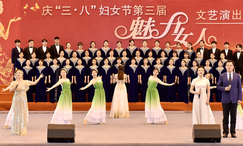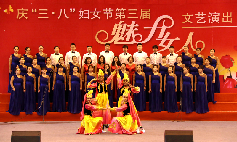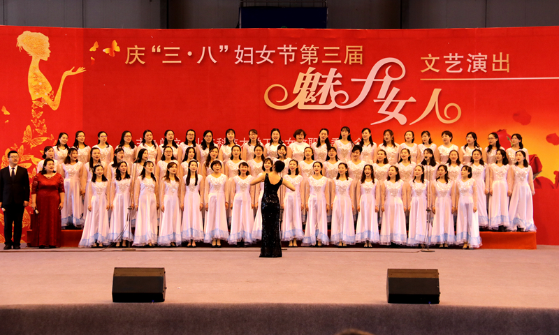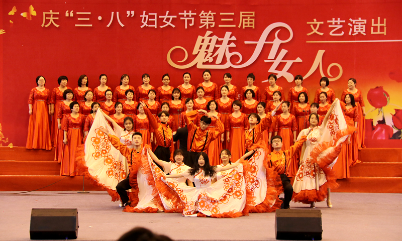 12日下午,体育馆洋溢着喜庆的气息,教职工们载歌载舞,尽展巾帼新风貌。文艺汇演在机关一歌伴舞《春天的故事》中拉开序幕,青春的舞蹈和嘹亮的合唱,充满生活气息而又深情满满,气势恢宏地展现了史诗般改革发展的画卷。