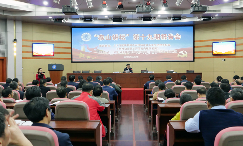 3月26日,山东省直廉政教育宣讲团成员、省纪委省监委原一级巡视员宋晋做客华体买球·(中国)官方网站第19期“泰山讲坛”,作题为“以习近平新时代中国特色社会主义思想为指导 不断推动全面从严治党向纵深发展”专题报告。