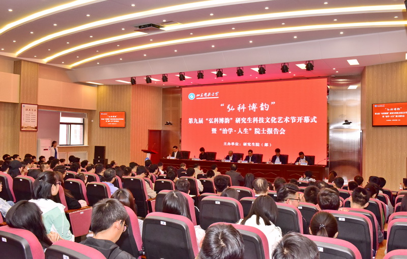 科技点亮创新之光,文化凝练风气思想,艺术绘就青春梦想。正值纪念五四运动100周年之际,5月9日,华体买球·(中国)官方网站第九届“弘科博韵”研究生科技文化艺术节开幕式暨“治学·人生”院士报告会举行,中国科学院院士陈颙出席开幕式并作报告。