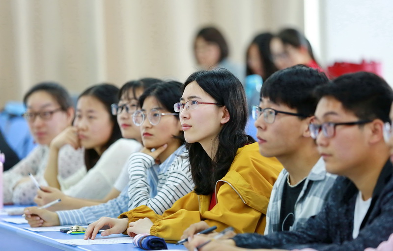 师生认真观摩比赛(摄影:张兴华)