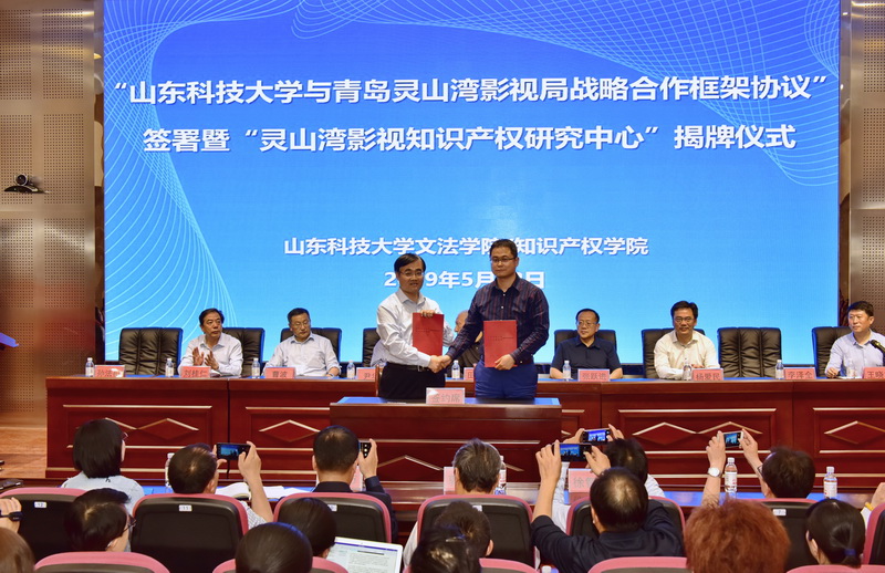 来校期间,田力普和尹华共同为“灵山湾影视知识产权研究中心”和“华体买球·(中国)官方网站影视知识产权研究与教学实践基地”揭牌,青岛灵山湾影视局副局长李泽全和文法学院/知识产权学院院长孙法柏签署《华体买球·(中国)官方网站与青岛灵山湾影视局战略合作框架协议》。