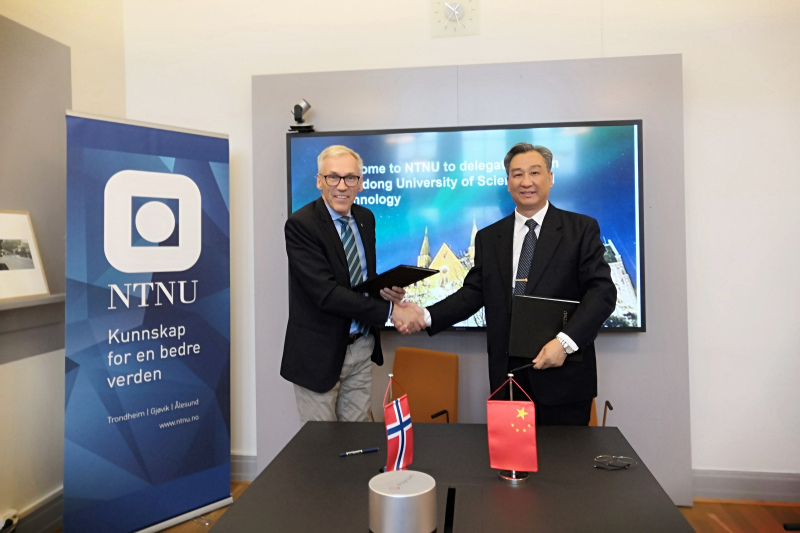 在挪威科技大学,科研副校长Bjarne Foss、国际处负责人Nina E.Sindre及地理及矿产资源工程系Charlie Chunlin Li院士热情接待了访问团一行。双方表示两校教授之间的互访及科研合作与交流已经取得了较好效果,同意继续加深合作关系,扩大合作范围,进一步开启学生交流和教师互访,加深科研技术合作,并探索开展两校相似学科之间的有效合作模式。经过深入探讨和磋商,两校签署了《华体买球·(中国)官方网站与挪威科技大学谅解备忘录》。代表团在挪威科技大学地理及资源工程系及化工系负责人的陪同下,参观了校区及相关实验室。