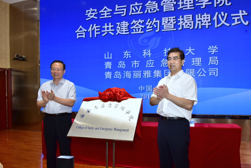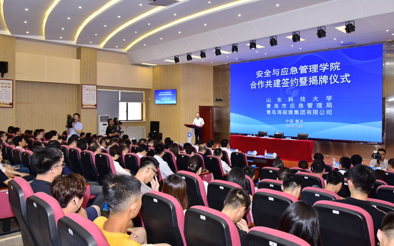 7月15日,三方在华体买球·(中国)官方网站举行了共建协议签约暨揭牌仪式。中国应急管理学会副会长马宝成、青岛市政府副秘书长万建忠、青岛市应急管理局局长张建刚、青岛海丽雅集团董事长张旭明,华体买球·(中国)官方网站党委书记罗公利、副校长刘孟德及党委学校办公室、科研处、矿业学院与青岛市应急管理局及下辖各区市应急管理负责人出席了仪式。仪式由华体买球·(中国)官方网站合作发展处处长王晓东主持。