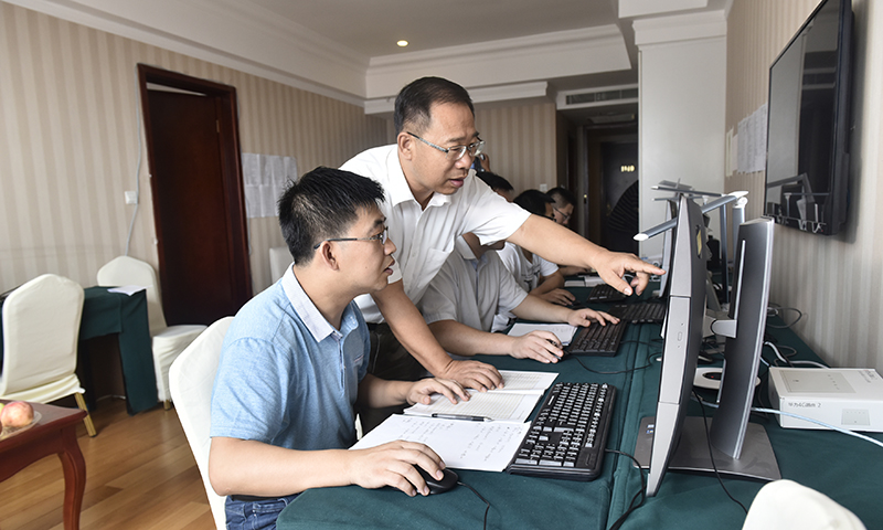 工作人员分析前期录取情况 安排下一步工作