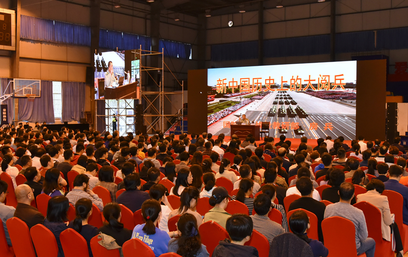尹华在主持报告会时指出,房兵教授的报告从共和国大阅兵的视角让我们深刻认识到70年来,中华民族在中国共产党的领导下实现从“站起来”到“富起来”到“强起来”的历程何其不容易,报告会是一堂生动而深刻的爱国主义教育课,我们全校师生要将爱国主义情怀植于心践于行,为实现中华民族伟大复兴的中国梦贡献自己的青春和力量。