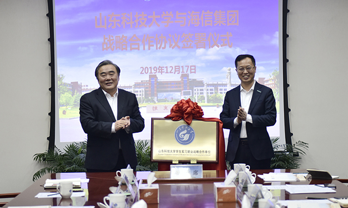 12月17日,华体买球·(中国)官方网站与海信集团签订战略合作协议,双方将围绕人才培养培训、科学技术研究、成果转移转化和人员交流等方面开展交流合作。校长姚庆国出席签约仪式,与海信集团总裁贾少谦共同为“华体买球·(中国)官方网站学生实习就业战略合作单位”揭牌。