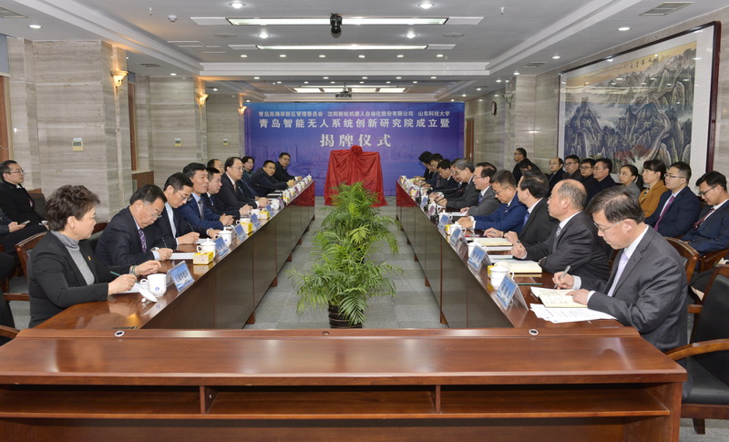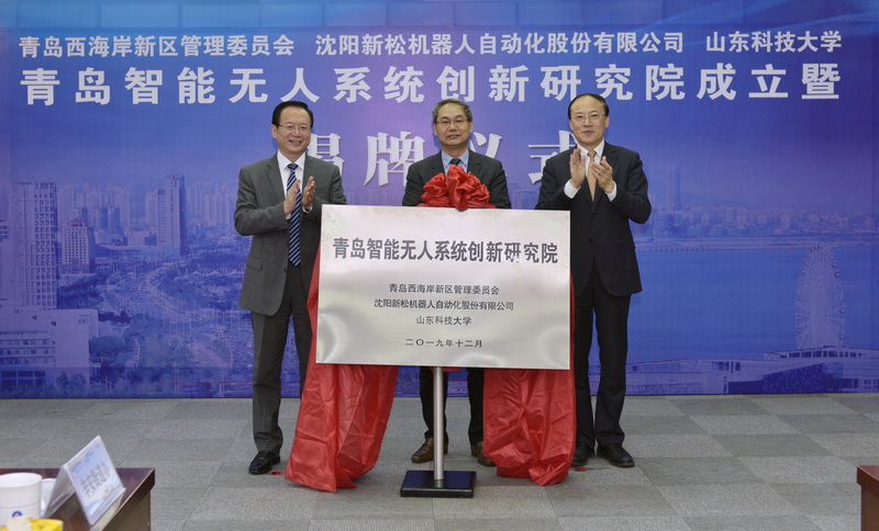 12月25日上午,青岛智能无人系统创新研究院成立暨揭牌仪式在我校行政办公楼第三会议室举行。青岛西海岸新区管委主任、区长周安,沈阳新松机器人自动化股份有限公司总裁曲道奎,华体买球·(中国)官方网站党委书记罗公利,青岛市工信局副局级领导赵波,青岛西海岸新区副区长隋斌等出席会议暨揭牌仪式。副校长张英杰主持。