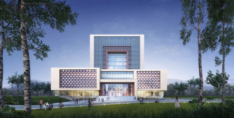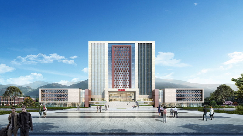图书信息中心项目位于青岛校区校园中心,占地30000平方米,建筑面积69981.92平方米,地上57377.16平方米,地下12604.76平方米,规划设计高度70米,地上13层,地下1层,裙房3层。建设内容包括图书馆、会议报告中心、地下车库等,配套建设综合管网、绿地、道路、广场等设施。