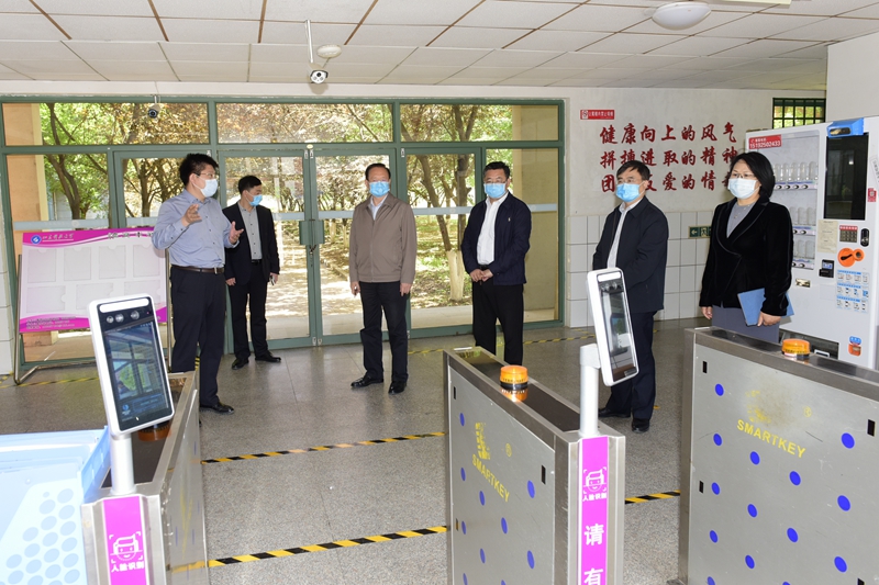 在实地检查中,罗公利不时向工作人员询问各项工作开展情况,对教学和生活区域的各项设施准备情况进行检查,详细了解学生返校后上课、住宿、用餐、收发快递等相关情况。在图书馆,他详细听取了学生返校后如何进入图书馆学习的汇报,对存在的相关问题提出进一步完善落实的要求;在教学楼及多处临时留观点,听取了相关部门对留观点等工作情况的汇报,就进一步做好做细疫情防控工作提出要求。