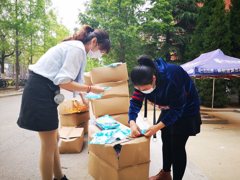 为每名返校学生发放防疫“爱心礼包”,包括一个体温计、10个口罩、2包消毒湿巾等防疫物资。