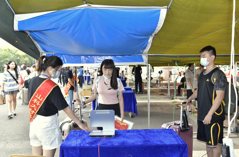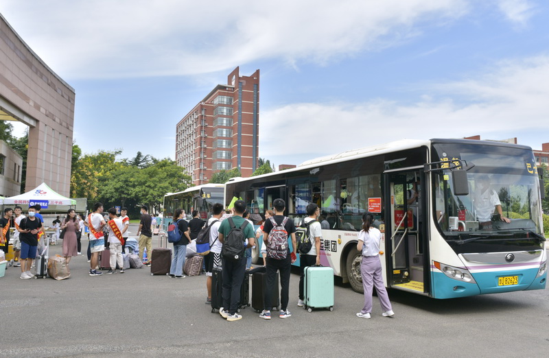 为了方便新生首次入校,学校在青岛火车站、汽车站设置了接站点,在校内也专门安排了摆渡车辆,循环运转于南门报到点和学生宿舍之间,帮助新生搬运行李,每一处细节背后都是无微不至的关怀,大家用心用情的服务,把一股股暖流注入到每一名新生及亲友的心头。