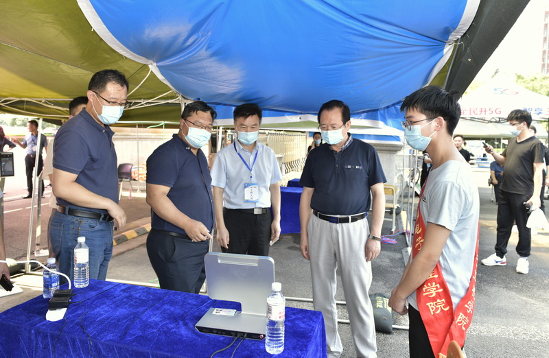 罗公利在迎新现场了解新生报到情况