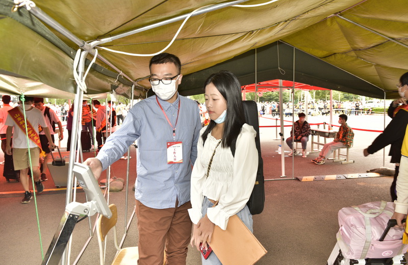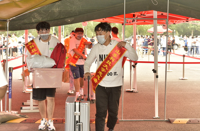 “独自入校,是大学精彩生活的开场礼。”土建学院土木类专业新生甘永杰是湖北黄冈人,他表示,在战“疫”之中,山东省对口支援黄冈市,从那时起,就决定要报考山东的高校,来到华体买球·(中国)官方网站,是圆了自己的梦。到达学校后,他在志愿者帮助下,独自带着行李开启了入学报到模式。在新生专用通道,经过测体温、物品消杀,出示健康码、身份证、录取通知书等证件后,他顺利完成了报到。虽说家长不在身边,但一切都很顺利,无论是搬运行李,还是办理手续,都有志愿者全程指导。